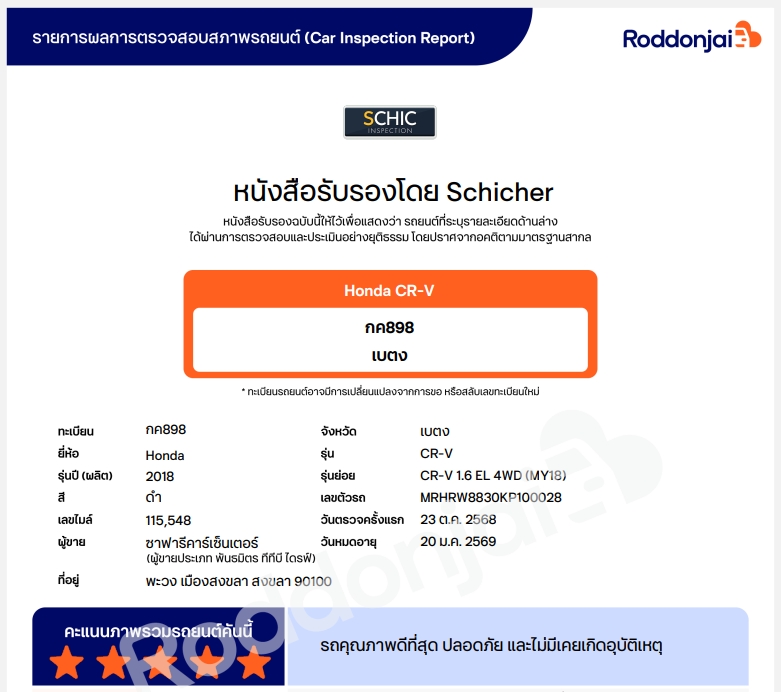 คะแนนประเมินสภาพรถยนต์จากผู้เชี่ยวชาญเฉพาะทางระดับมาตรฐานสากลกว่า 274 จุด