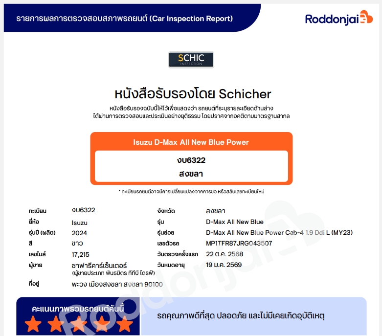 คะแนนประเมินสภาพรถยนต์จากผู้เชี่ยวชาญเฉพาะทางระดับมาตรฐานสากลกว่า 274 จุด