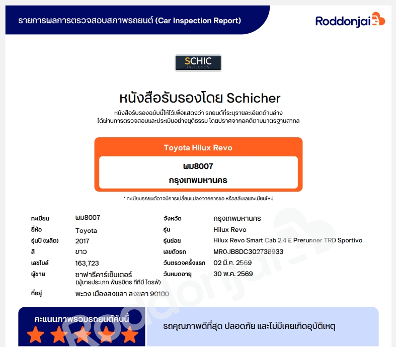 คะแนนประเมินสภาพรถยนต์จากผู้เชี่ยวชาญเฉพาะทางระดับมาตรฐานสากลกว่า 274 จุด