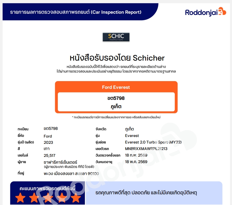 คะแนนประเมินสภาพรถยนต์จากผู้เชี่ยวชาญเฉพาะทางระดับมาตรฐานสากลกว่า 274 จุด